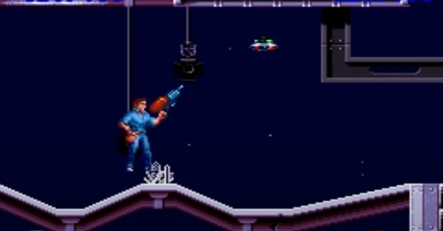 The Super Nintendo was home to some pretty great platformers, and a whole bunch of downright awful ones. Despite its attempts at innovation, Home Improvement: Power Tool Pursuit! falls squarely into the latter. Games from this era tended to have large levels that were more like an airplane hangar filled with platforms than the linear types pioneered by Super Mario Bros. Of course it sounds more ideal to have different directions to travel instead of a direct line from left to right, but these games and levels often struggled to guide the player or justify their extra space. It was just bloated game design, big messy levels that left players unclear how to navigate them. I suspect this was a good way to turn a game that should last an hour into one that takes three or four hours instead. I think they included tiny bugs that most of your weapons won’t even hit for the same reason. I had a chainsaw that shot Contra bullshit out of it, but I still got eaten alive by those things.